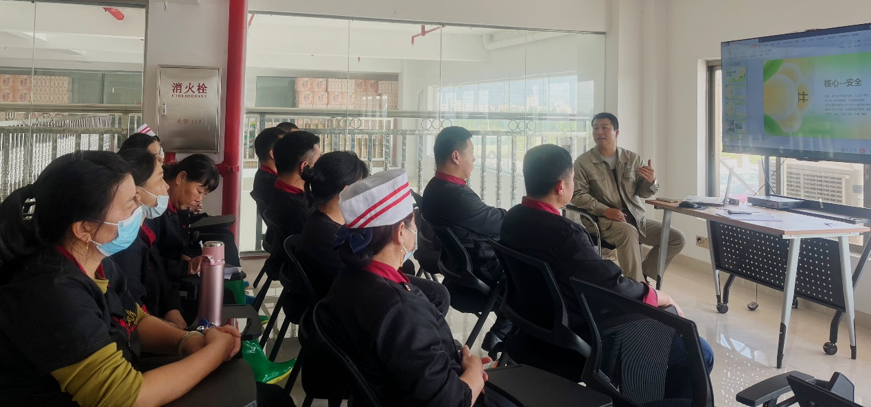 20241月12日下午,为加强员工宿舍及食堂安全管理,进一步强化员工安全意识,提高应急自救能力,东粤环保HSE管理部和企业管理部对员工宿舍和食堂进行安全及卫生大检查,对食堂工作人员进行现场安全教育
